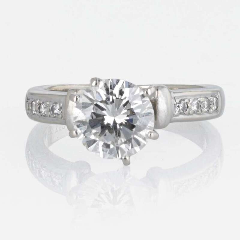 An 18K White Gold 2.00 carat Ladies Diamond Ring with Accent Diamonds 2.00 Brilliant-Round, GIA Certified