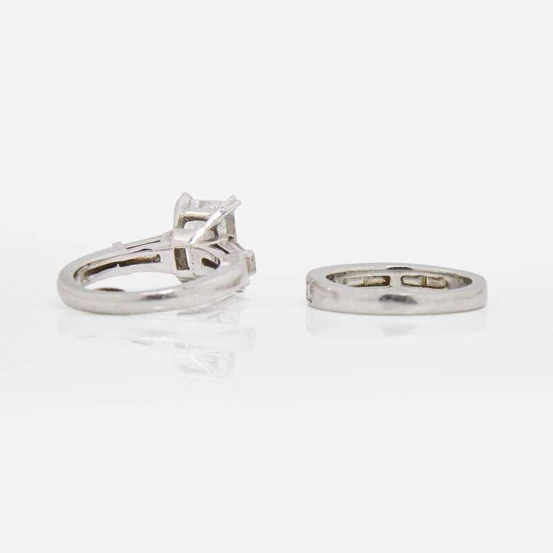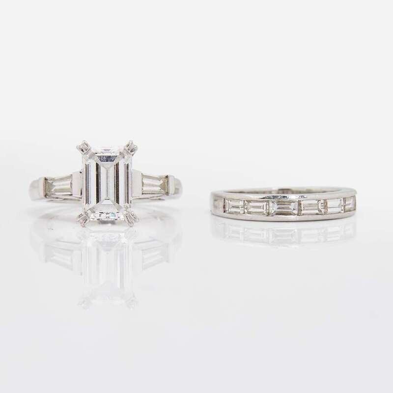An Emerald-Cut Diamond and Platinum Ring and Band 2.25 Carat Emerald-Cut Diamond, GIA Certified