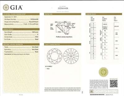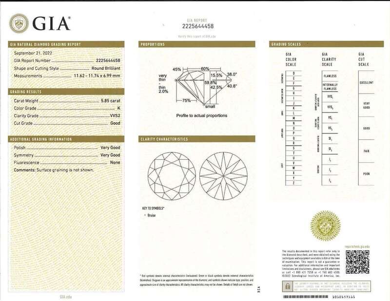 A Ladies Diamond and 18K Yellow Gold Ring 5.85 Carat Round Brilliant Diamond, GIA Certified