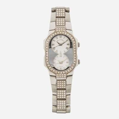 A Philip Stein Teslar Dual Time Zone Diamond Bracelet and Bezel Watch Philip Stein