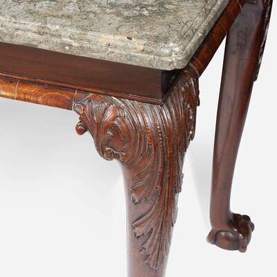 A George II rectangular carved mahogany side table with Derbyshire "fossil" marble top circa 1740-1750