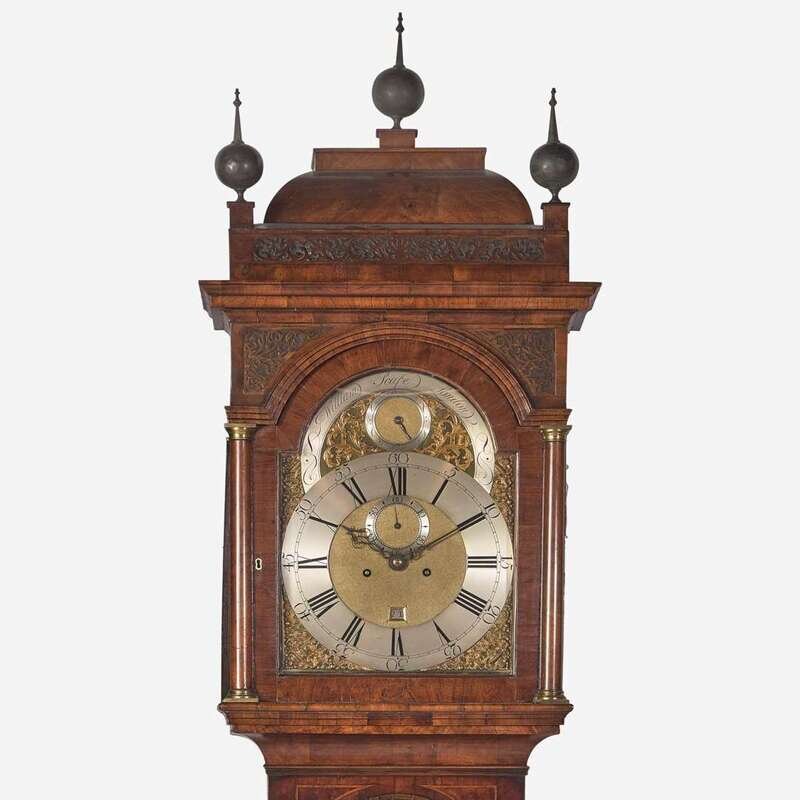 A George II inlaid and veneered burl walnut tall case clock William Scafe, London, circa 1750