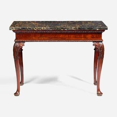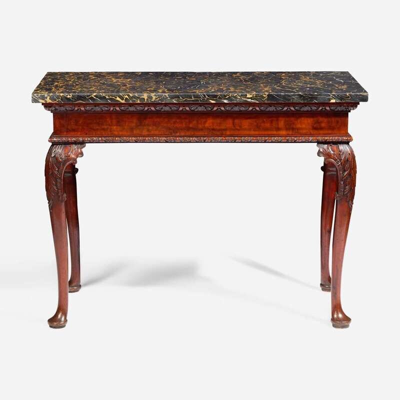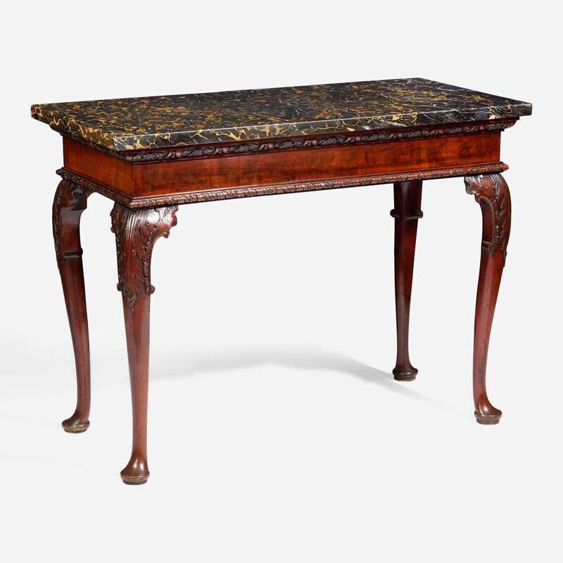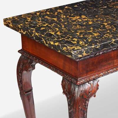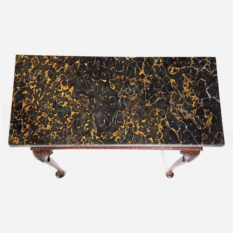A George II rectangular carved walnut side table with Portoro marble top mid-18th century