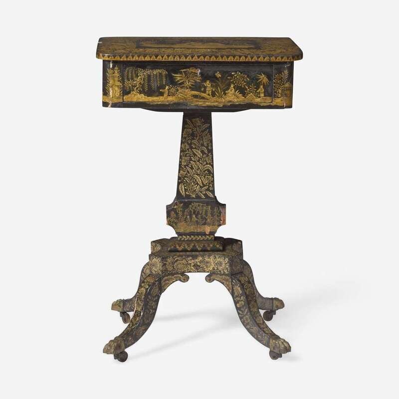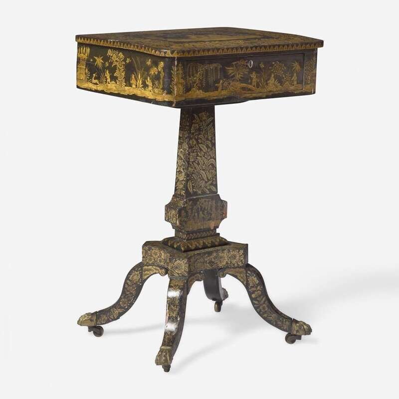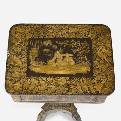 A Regency Chinoiserie penwork sewing stand early 19th century