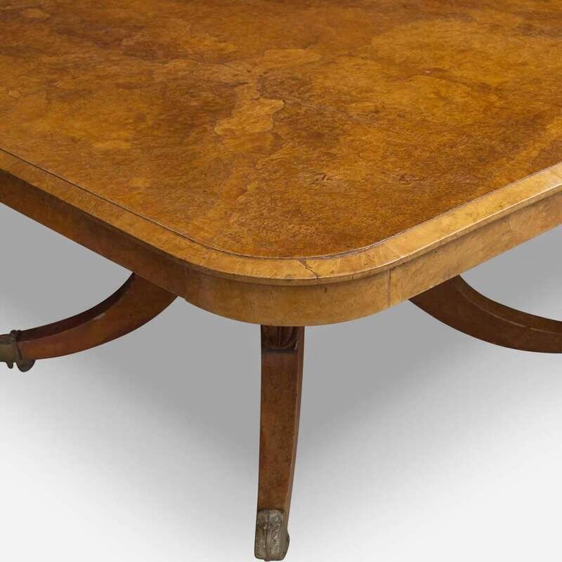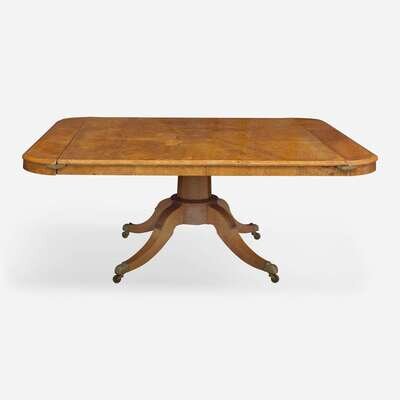 An impressive Regency pollard oak three-pedestal dining table circa 1820