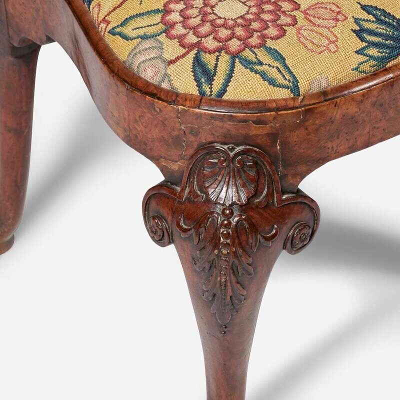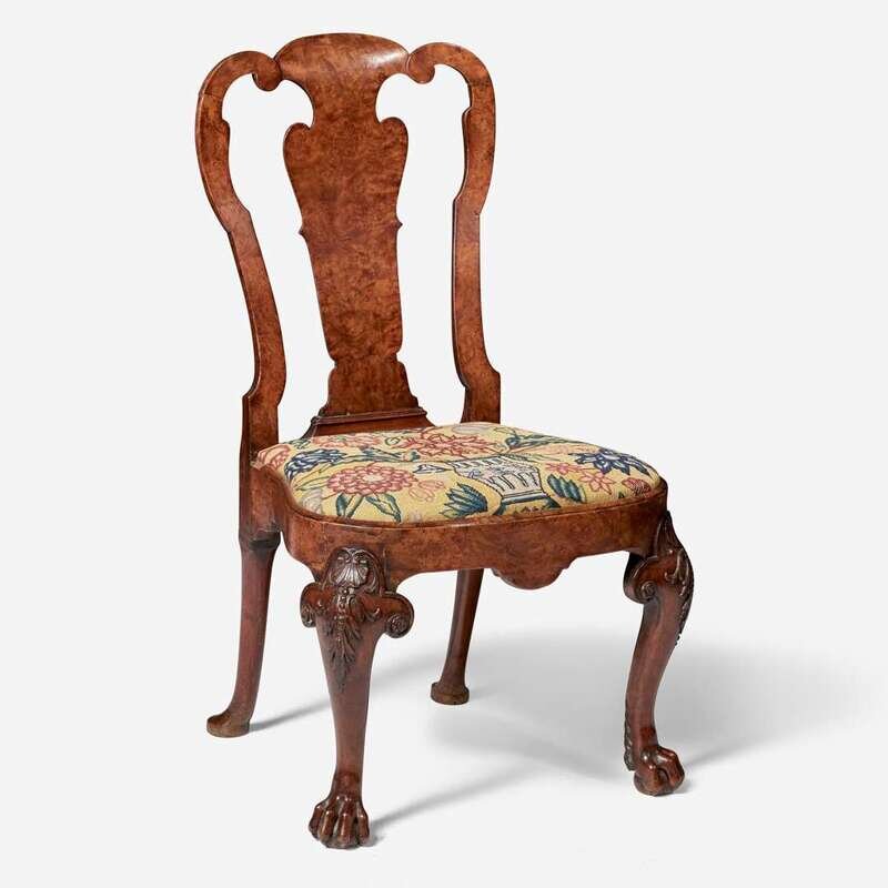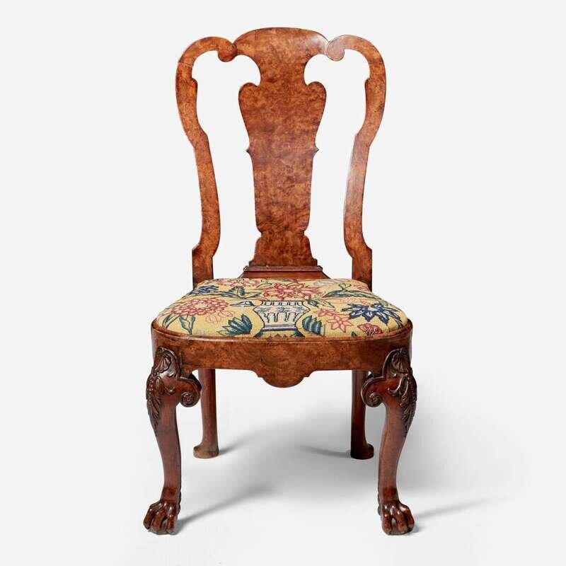 A George I carved and veneered burl walnut side chair circa 1720