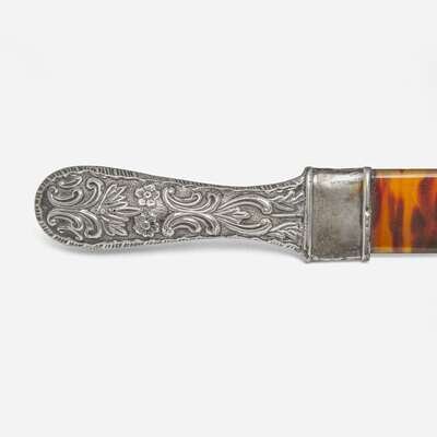 An assorted group of sterling silver, silverplated, and sterling-silver mounted faux tortoiseshell desk items Various makers, various dates ranging late 19th century - 1930