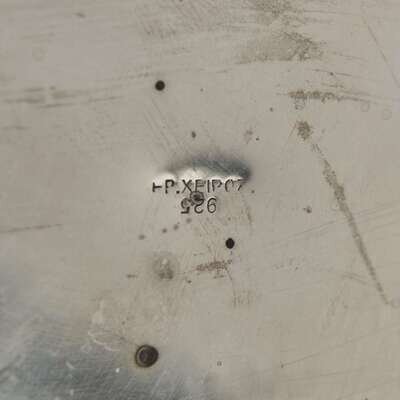 Flared and scalloped rim, body and base with lobed and repoussé decoration, marked to underside with illegible maker's mark and "925."