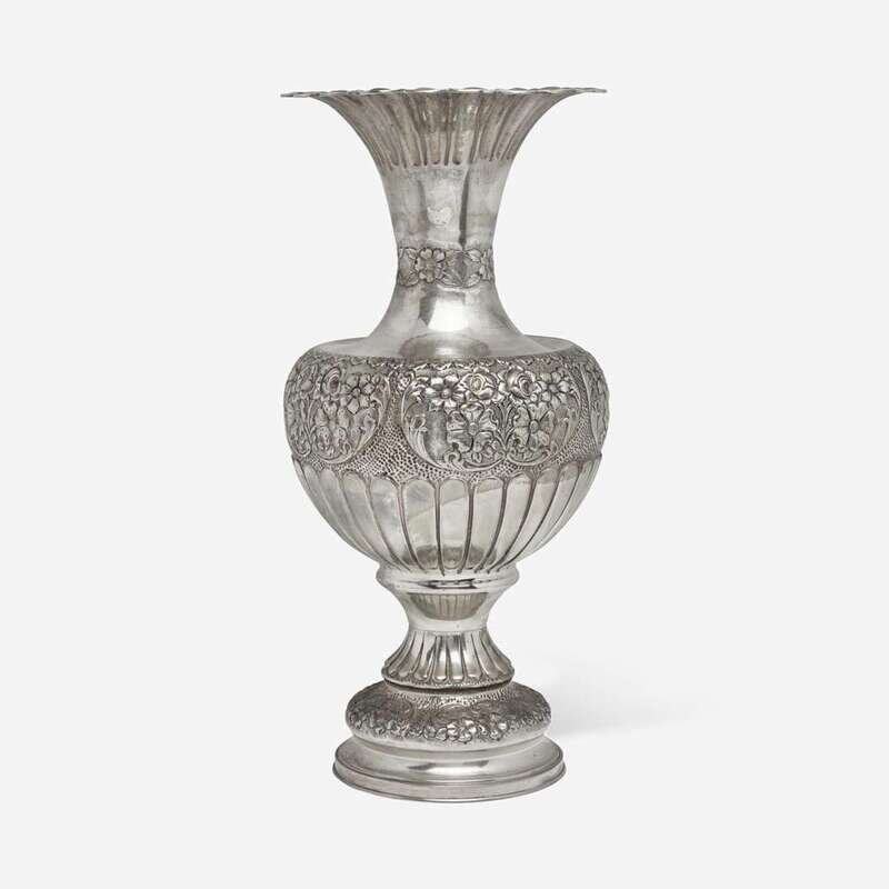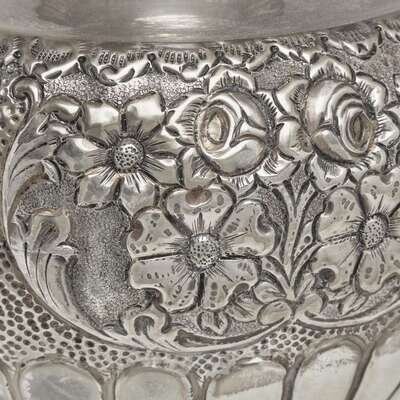 A large sterling silver floral repoussé vase late 19th / early 20th century