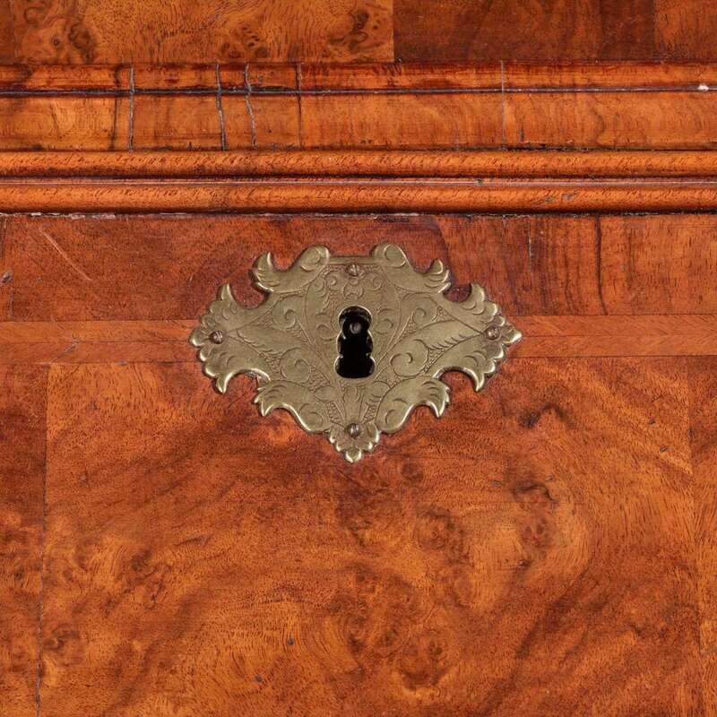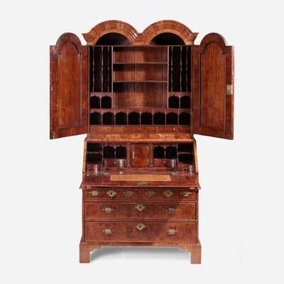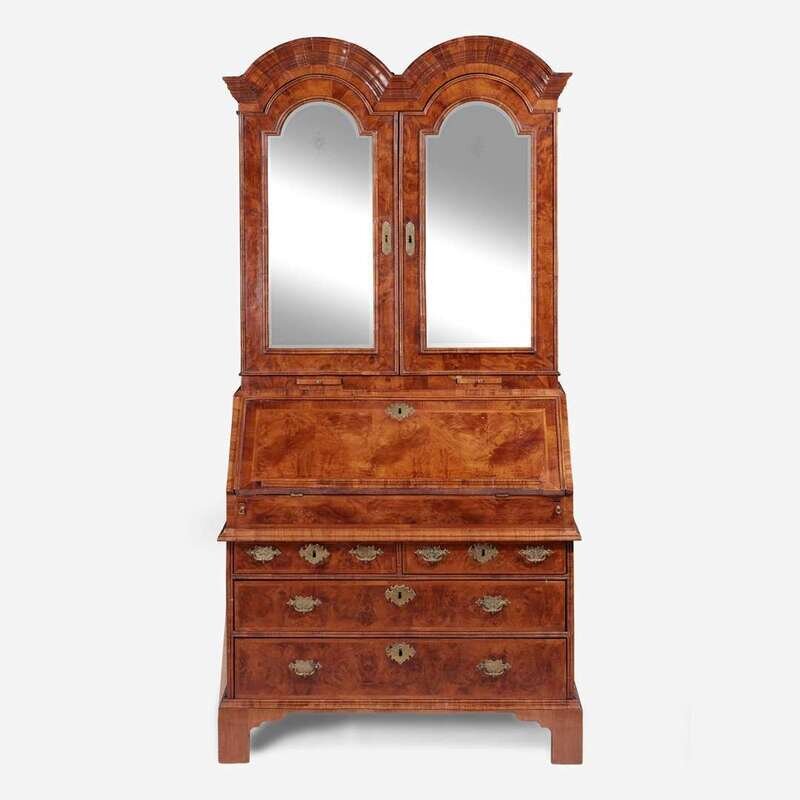 A Queen Anne inlaid and veneered walnut double-dome bureau bookcase circa 1720