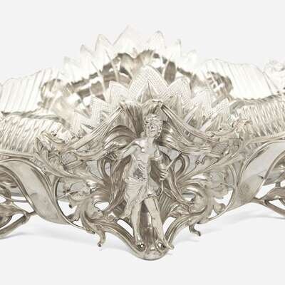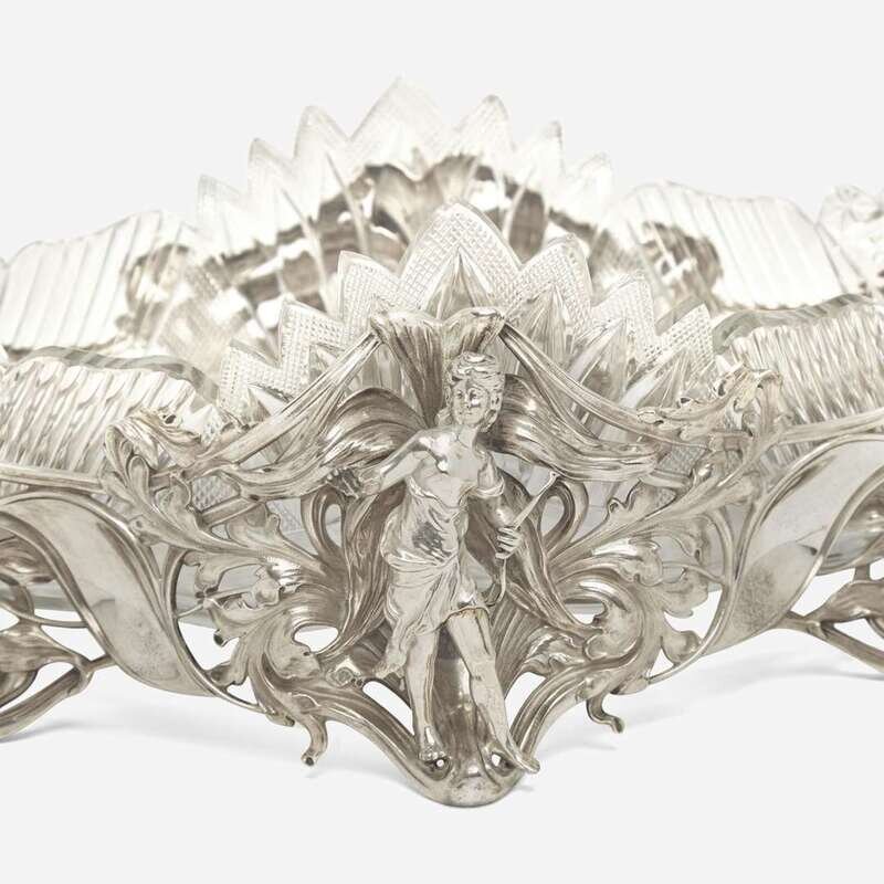 An Art Nouveau silver and cut-glass centerpiece Bearing import mark for Moscow, Russia, after 1908