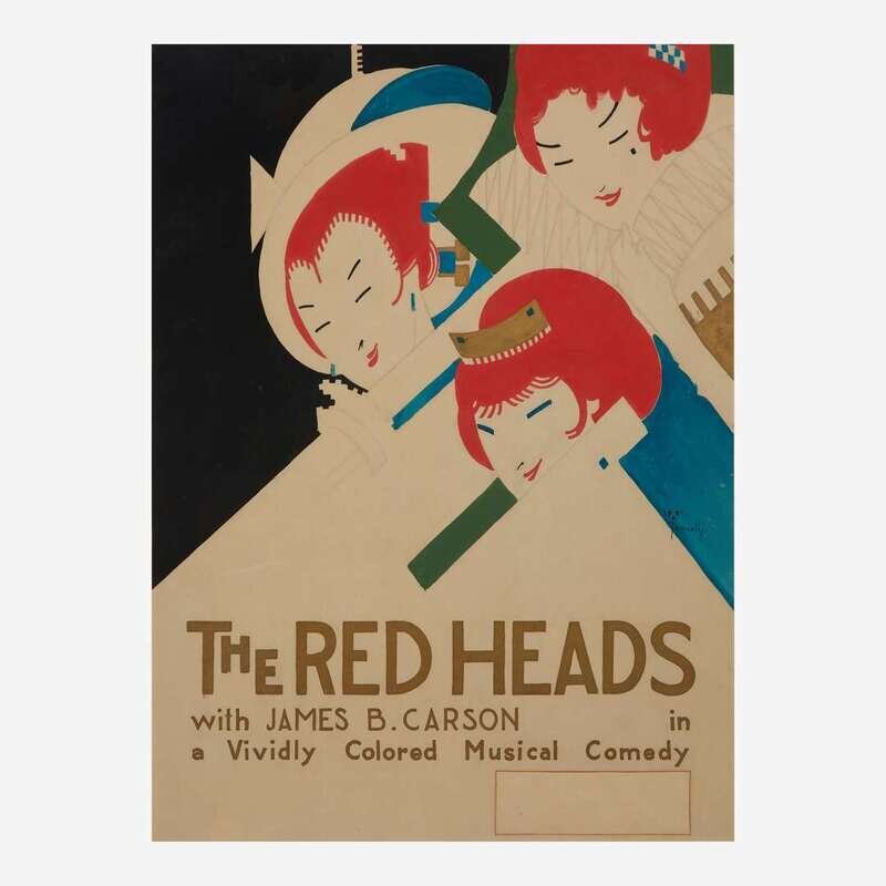 Alfonso Iannelli (American/Italian, 1888-1965) Original Maquette for "The Red Heads with James B. Carson in a Vividly Colored Musical Comedy" Poster