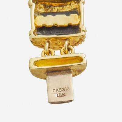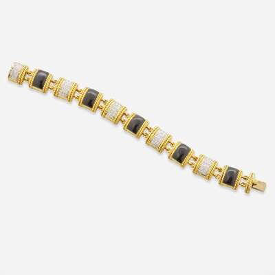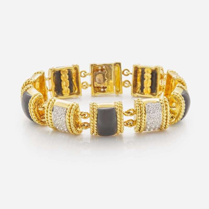 An 18K Yellow Gold, Onyx, and Diamond Bracelet