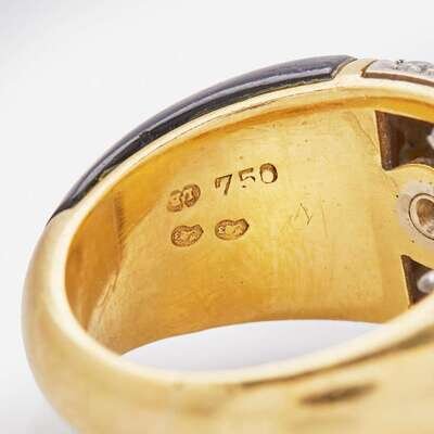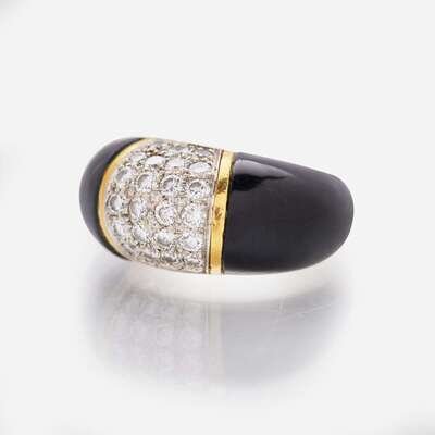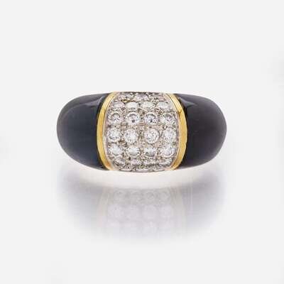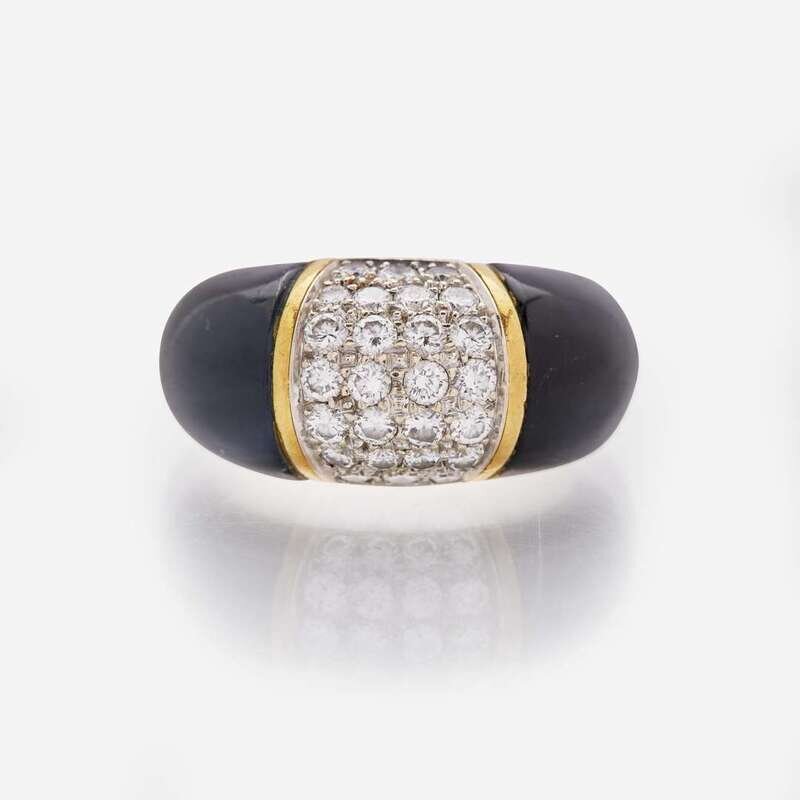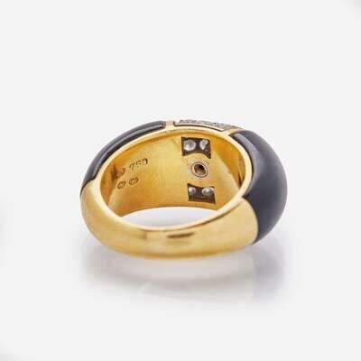 An 18K Yellow Gold, Onyx, and Diamond Ring