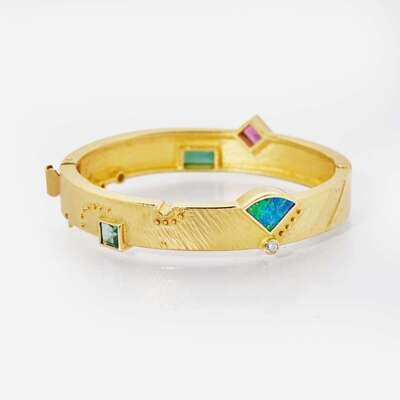 A Dan Alsberg 18K Yellow Gold and Gemstone Bangle