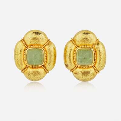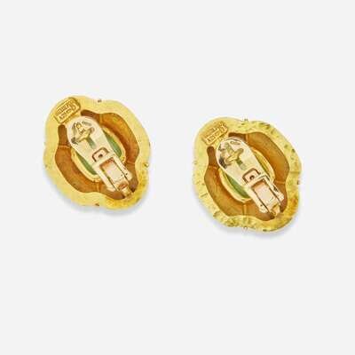 A Pair of 18K Yellow Gold and Gemstone Ear Clips by Ilias Lalounis