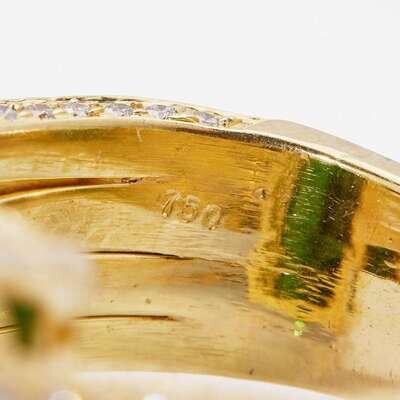 An 18K Yellow Gold, Green Tourmaline, and Diamond Ring