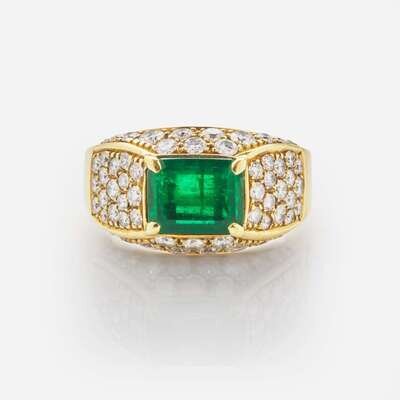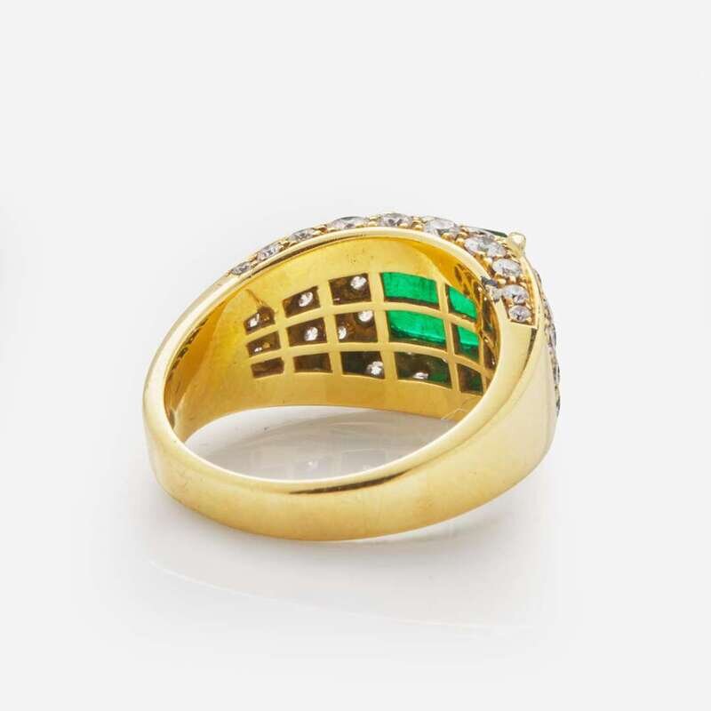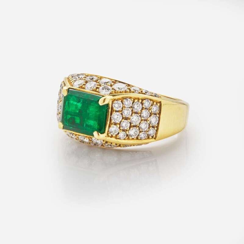 An 18K Yellow Gold, Diamond, and Emerald Ring