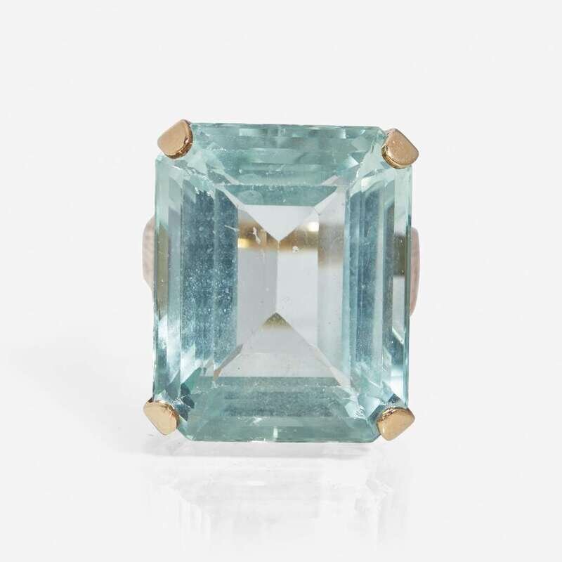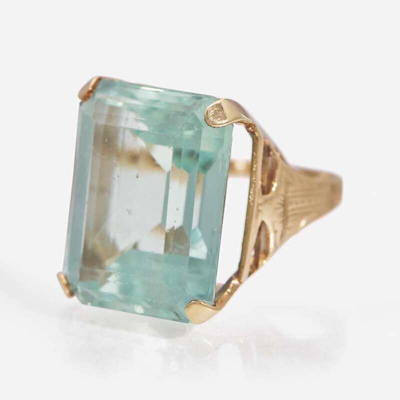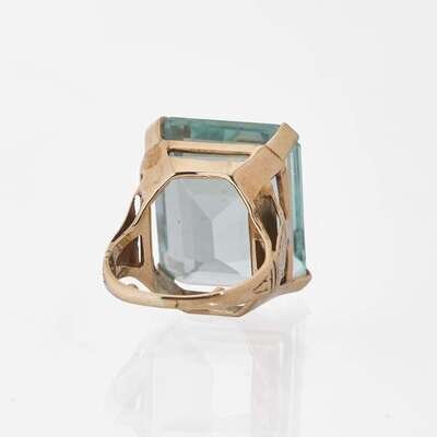 A 14K Yellow Gold and Aquamarine ring