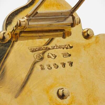 Earrings: 1in; Brooch: 2in; Gross Weight: 37.9 Gross dwt.