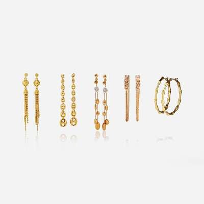 A Collection of Designer Gold Earrings Gucci, Roberto Coin