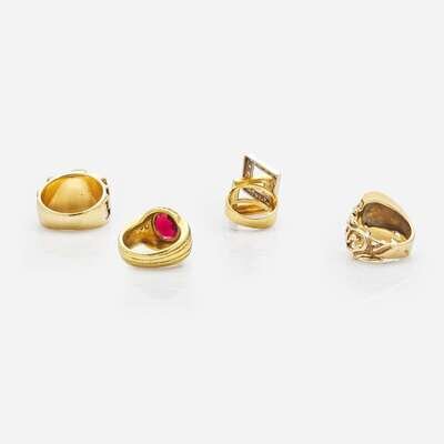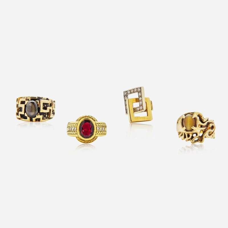 A Collection of Four Contemporary Yellow Gold and Gemstone Rings