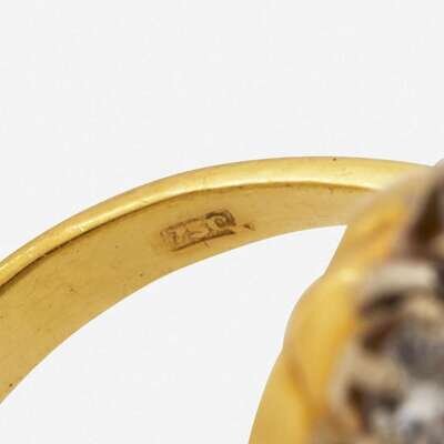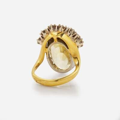 An 18K Yellow Gold, Platinum, Diamond, and Yellow Sapphire Ring