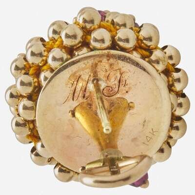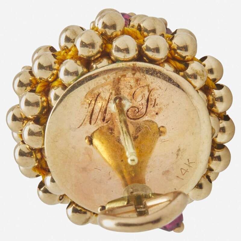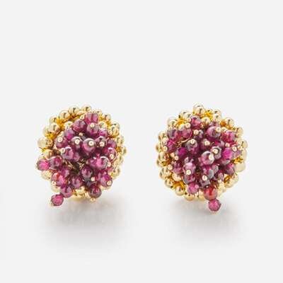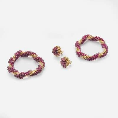A Matching Set of Garnet and 14K Yellow Gold Bracelets and Earrings