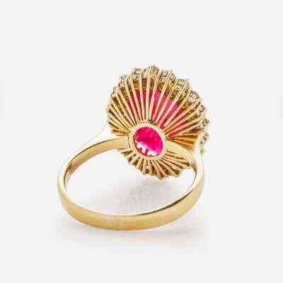 An 18K Yellow Gold, Diamond, and Ruby Ring
