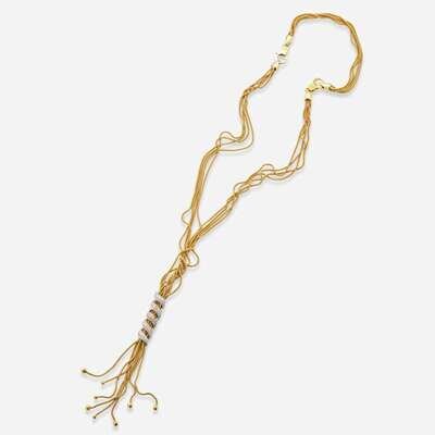 An 18K Yellow Gold and Diamond Tassel Necklace