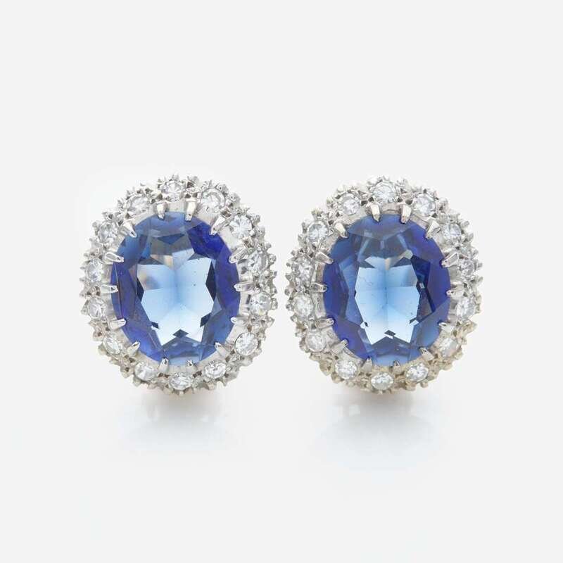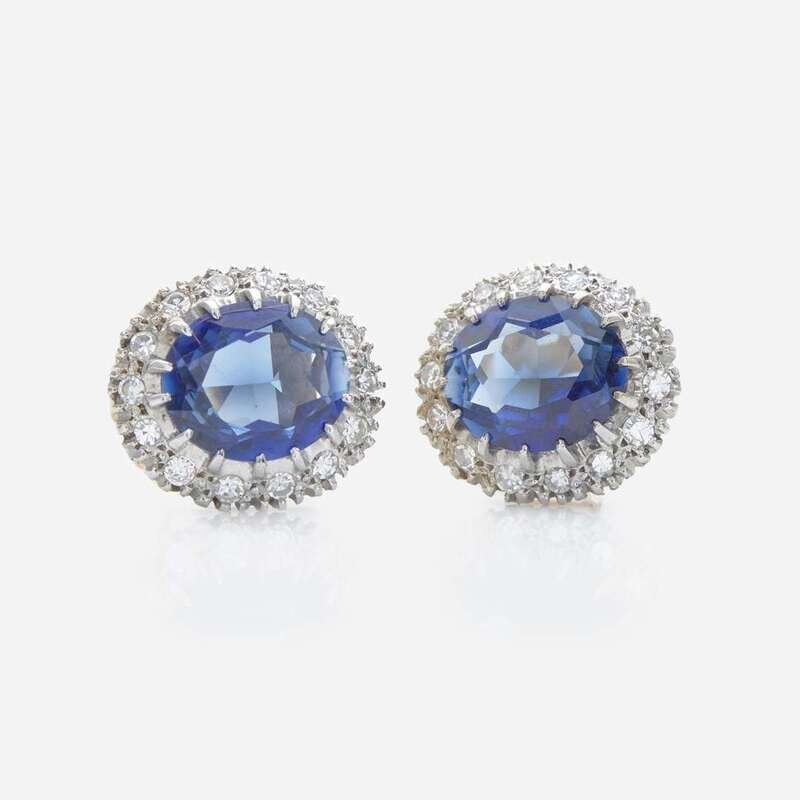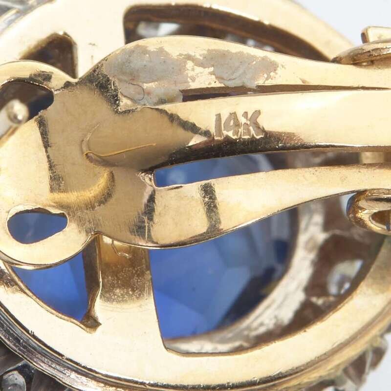 A Pair of 14K Yellow Gold, Diamond, and Sapphire Earrings