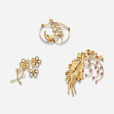 A Collection of Three 14K Yellow Gold Pins