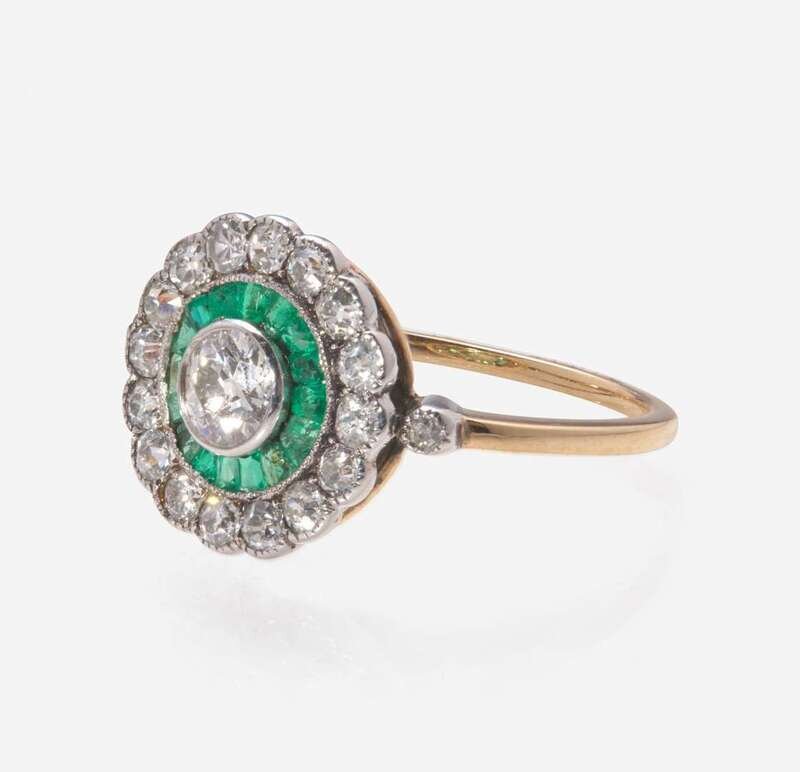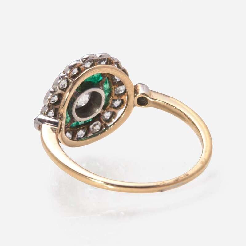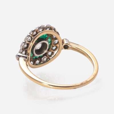 An Art Deco Gold, Diamond, and Emerald Ring