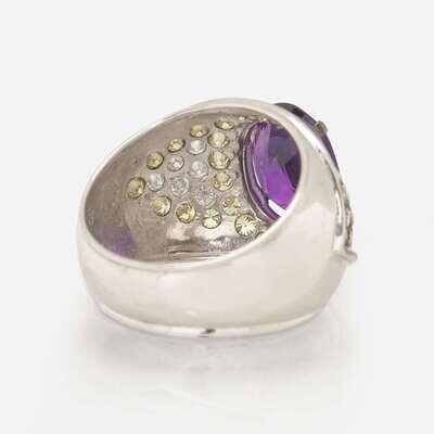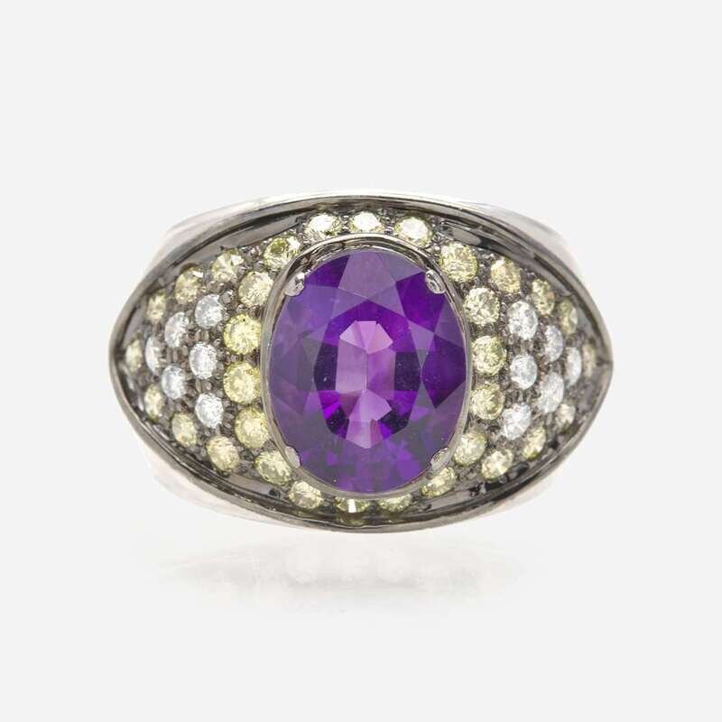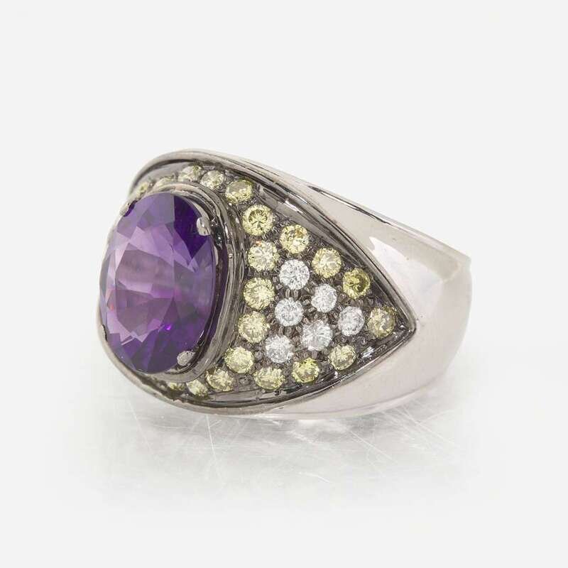 An Amethyst, Diamond, and Yellow Diamond Ring