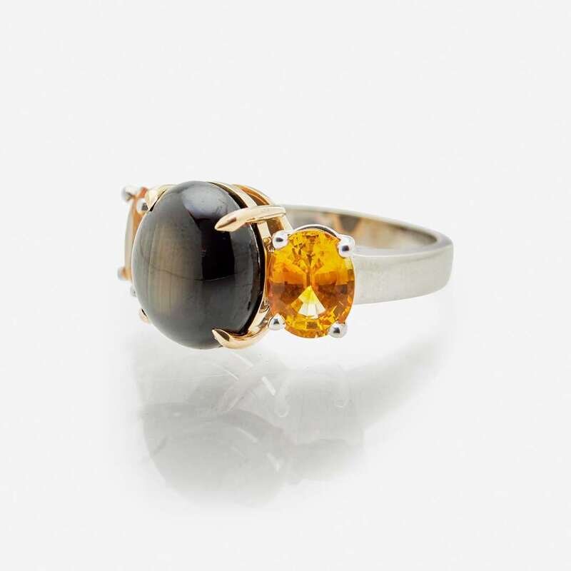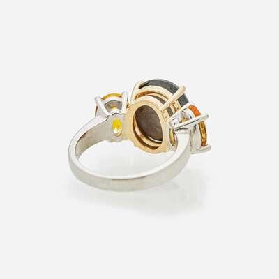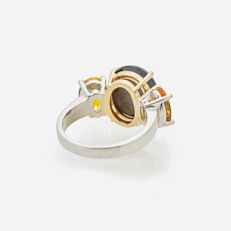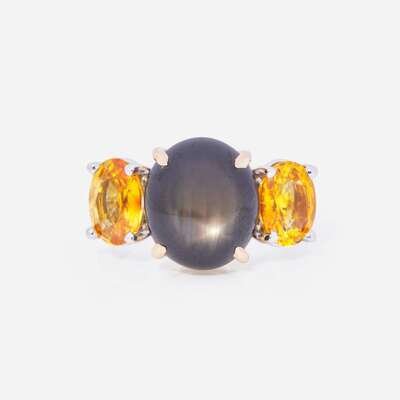 A Black Star Sapphire and Yellow Sapphire Ring