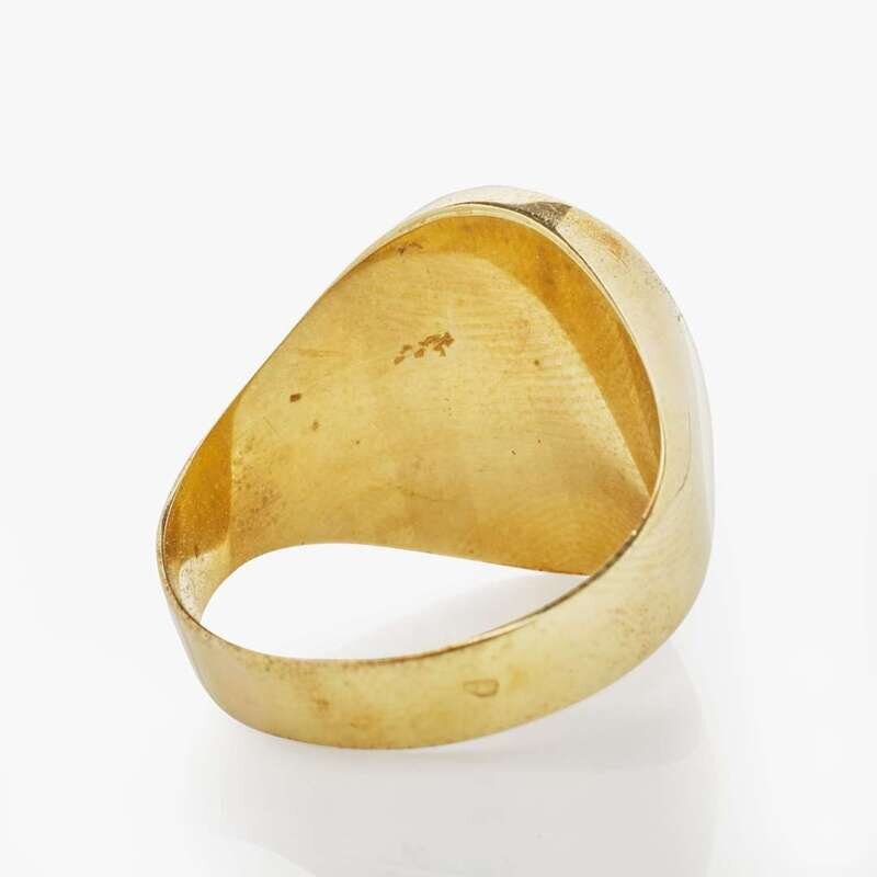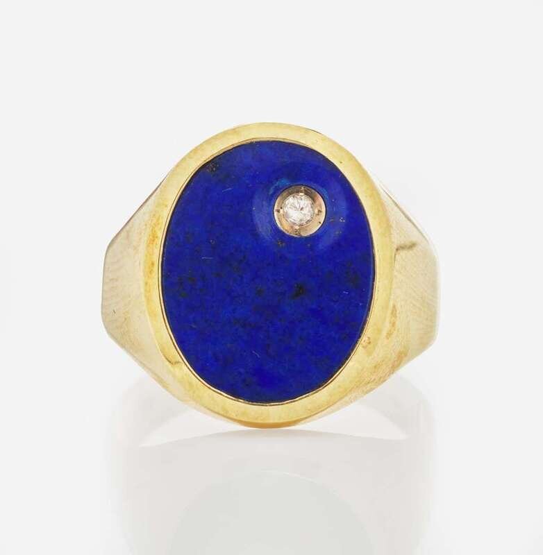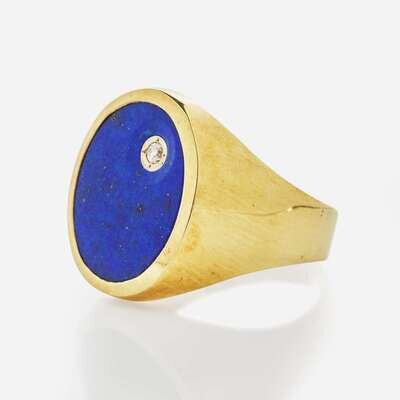 A 14K Yellow gold Lapis Lazuli and Diamond Signet Ring