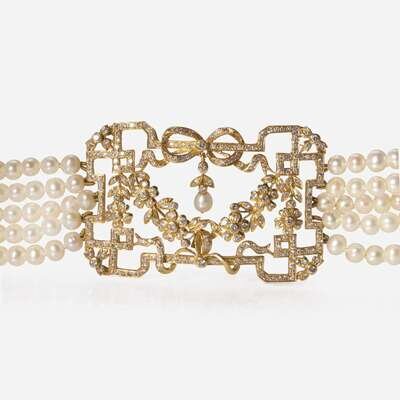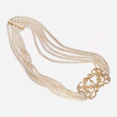 A Multi-Strand Pearl and Diamond Necklace