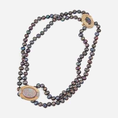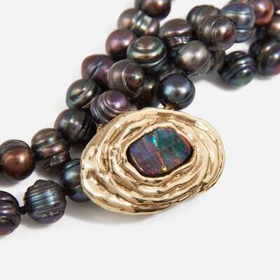 A Black Pearl and Opal Necklace