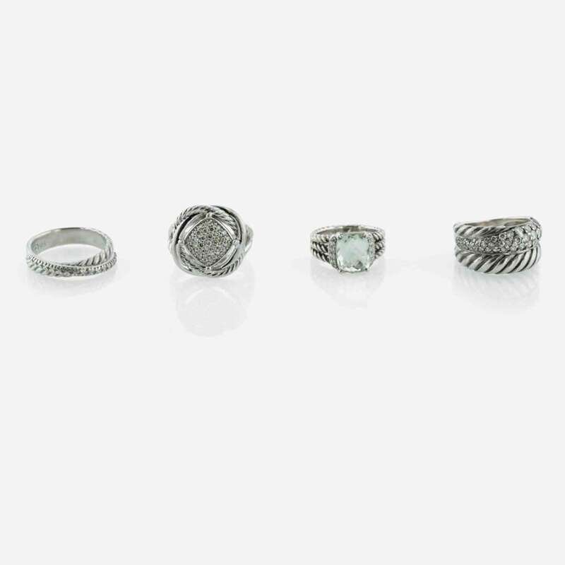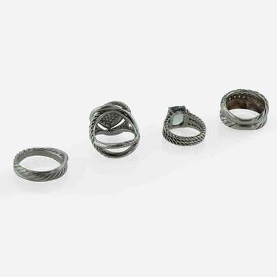 A Collection of Four Sterling Silver David Yurman Rings David Yurman