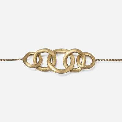 An 18K yellow gold Italian necklace by Marco Bicego, with five yellow gold textured loops at the center.