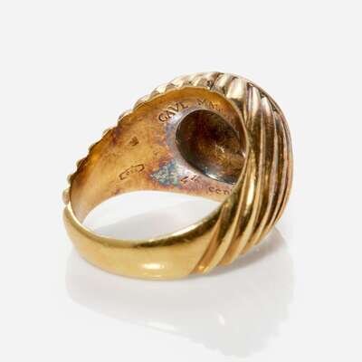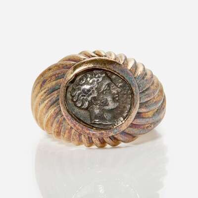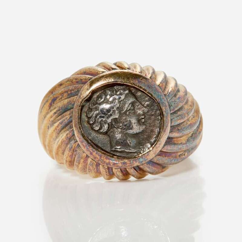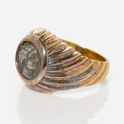 A vintage ladies Bvlgari 'Monete' ring, signed “750 Gaval Massilia B.A 6809 Bvlgari 4th Cent B.C”, circa 1970.