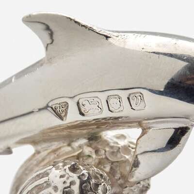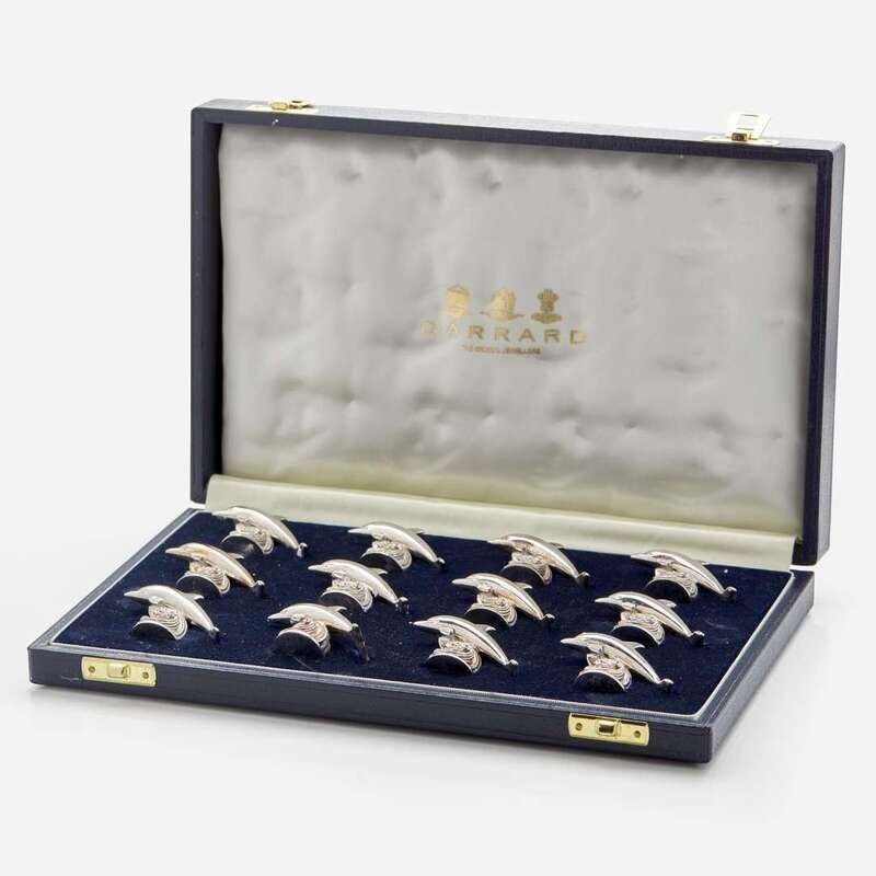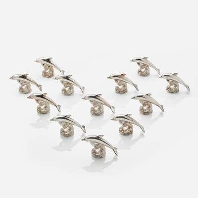 Garrard & Co. Ltd. (English, active 1722-Present) Set of Twelve Sterling Silver Dolphin-Form Place Card Holders, UK, 1995