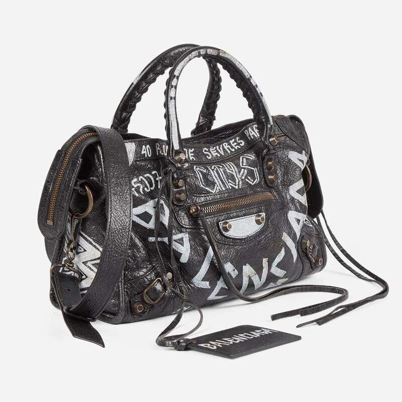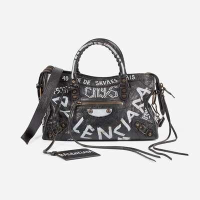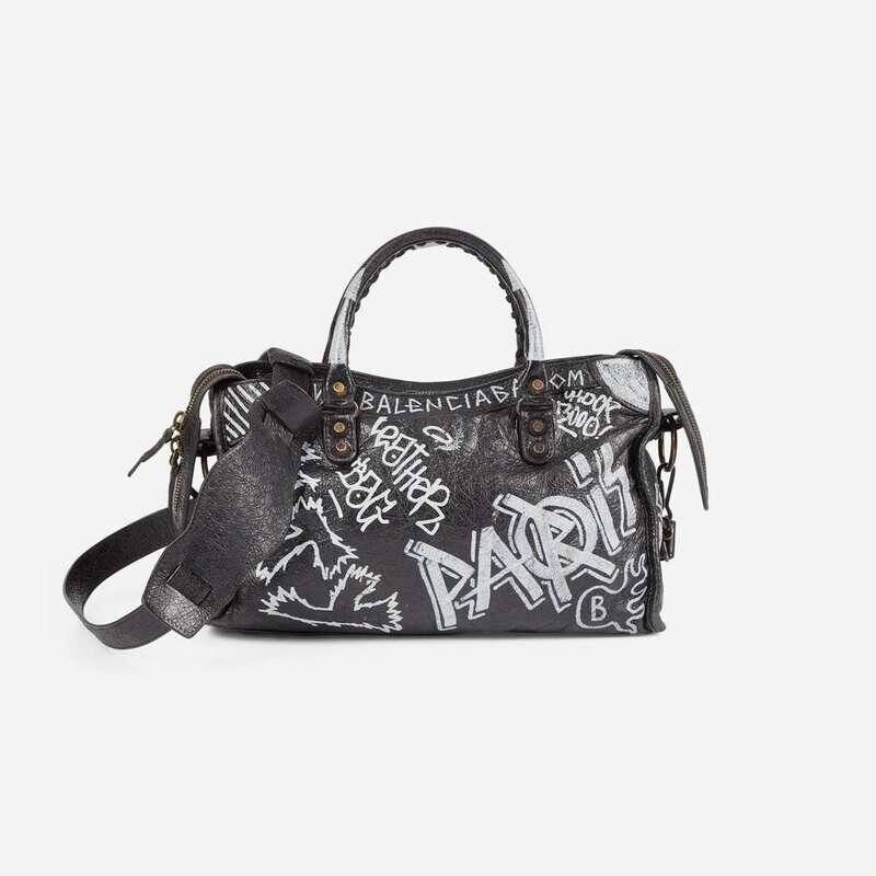 Balenciaga Agneau Classic Hardware Graffiti All Over S City in Black Balenciaga