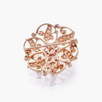 An Antique 10K Yellow Gold and Diamond Brooch