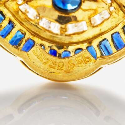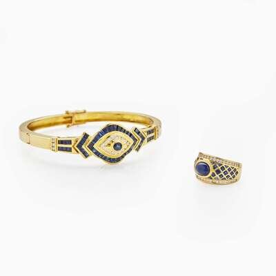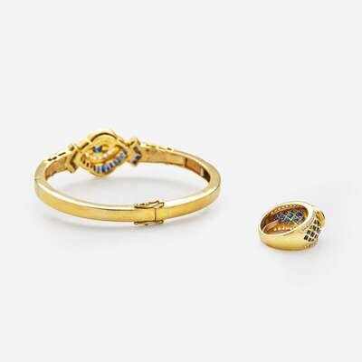 A Set of 18K Yellow Gold, Sapphire, and Diamond Bracelet and Ring