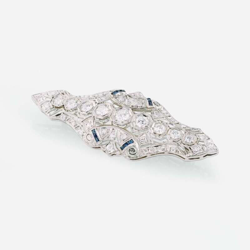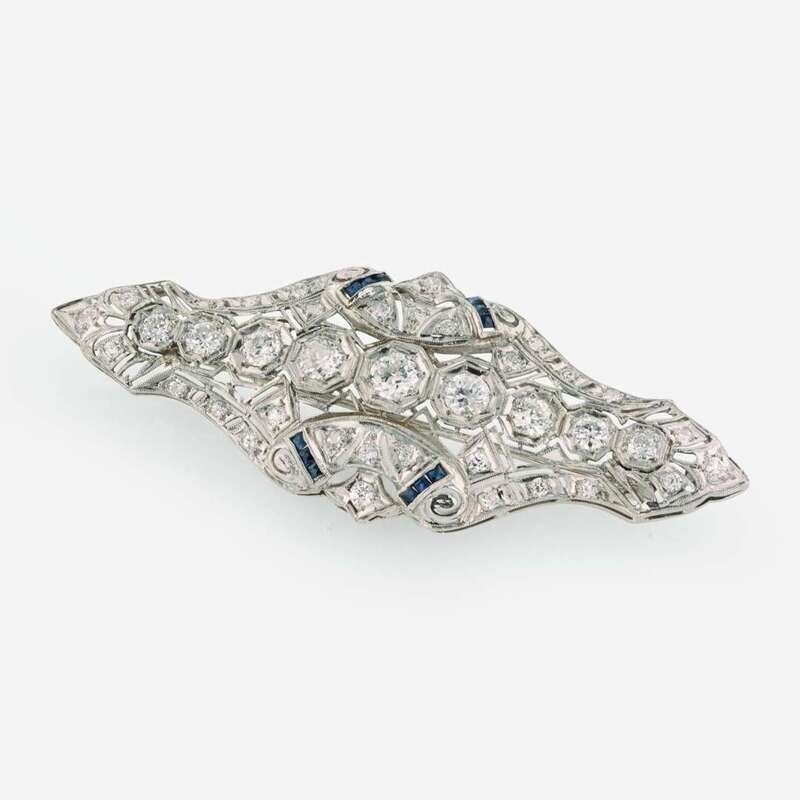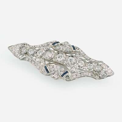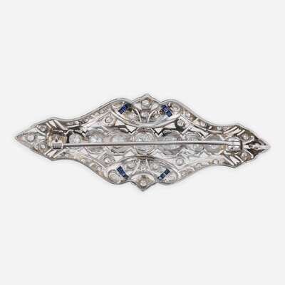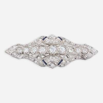 Art Deco 14K White Gold, Diamond, and Sapphire Pendant