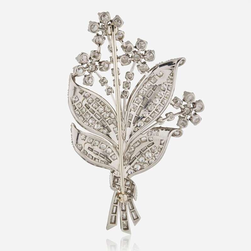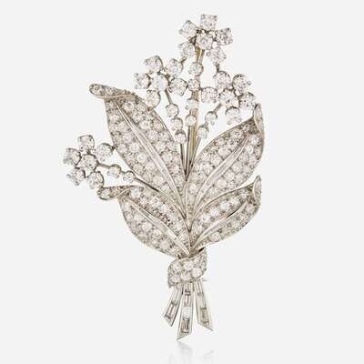 A Platinum and Diamond Flower Bouquet Brooch