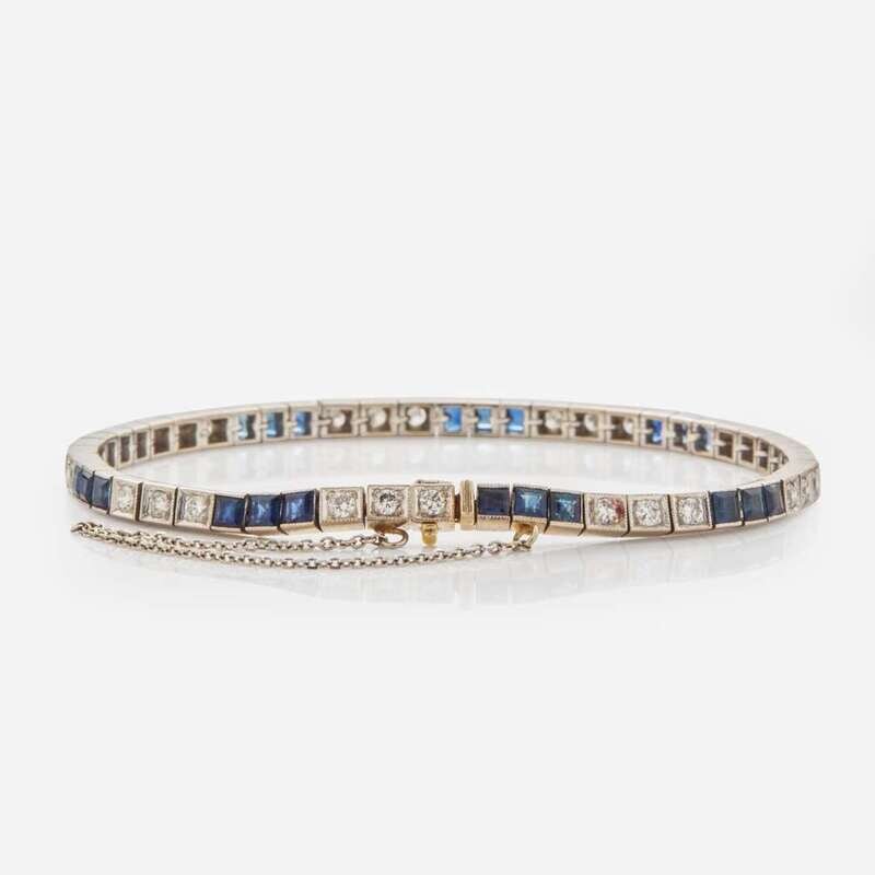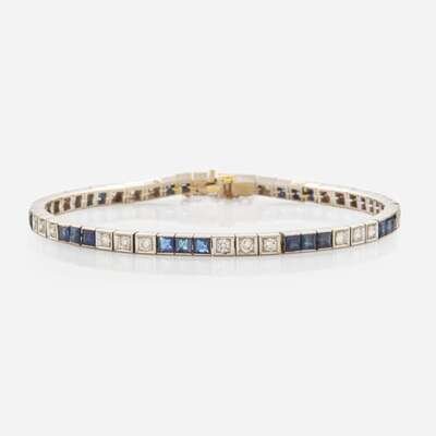 A 14K White Gold, Sapphire, and Diamond Bracelet