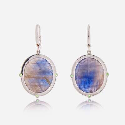 A Pair of 18K White Gold, Sapphire, Tsavorite, and Diamond Earrings