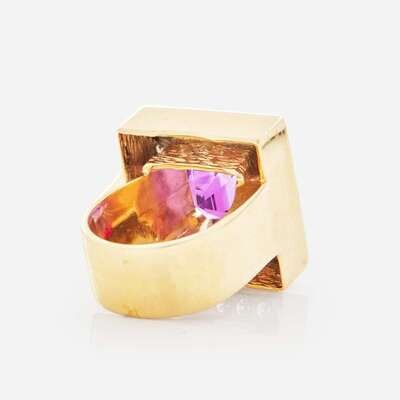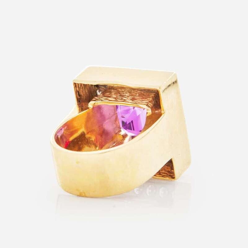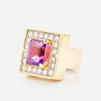 A 14K Yellow Gold, Diamond, and Amethyst Ring